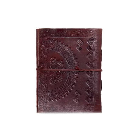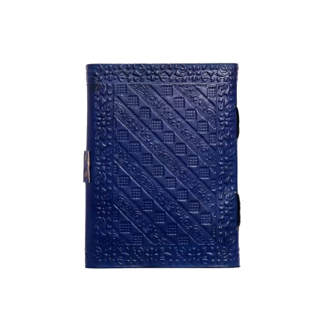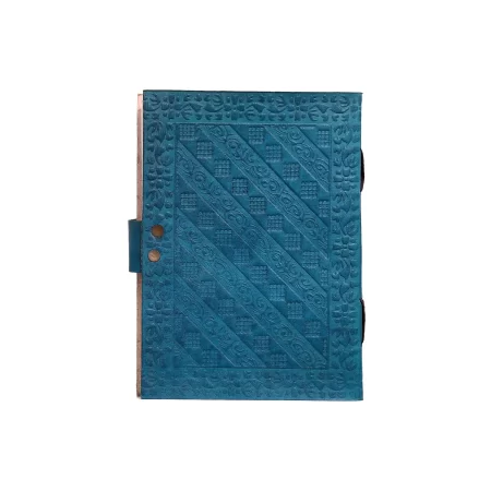 Distinctive antique diary with brown embossing on stone handmade blue leather. Crafted with care, it offers 240 pages for your writing and creative projects.