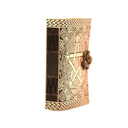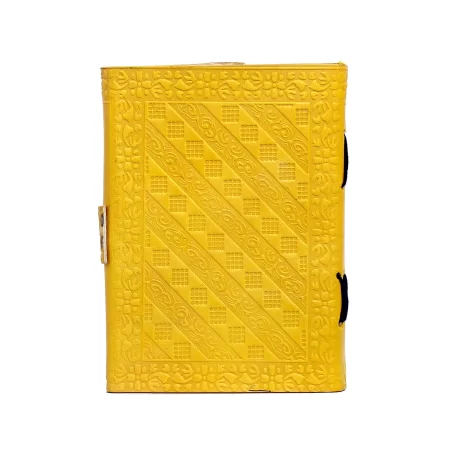 Charming antique diary with a black embossed design and stone yellow leather cover. Handcrafted with care, it contains 240 pages for your writing needs.